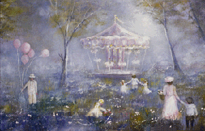 you want to escape. As you look at one of her pastels, delicate figures